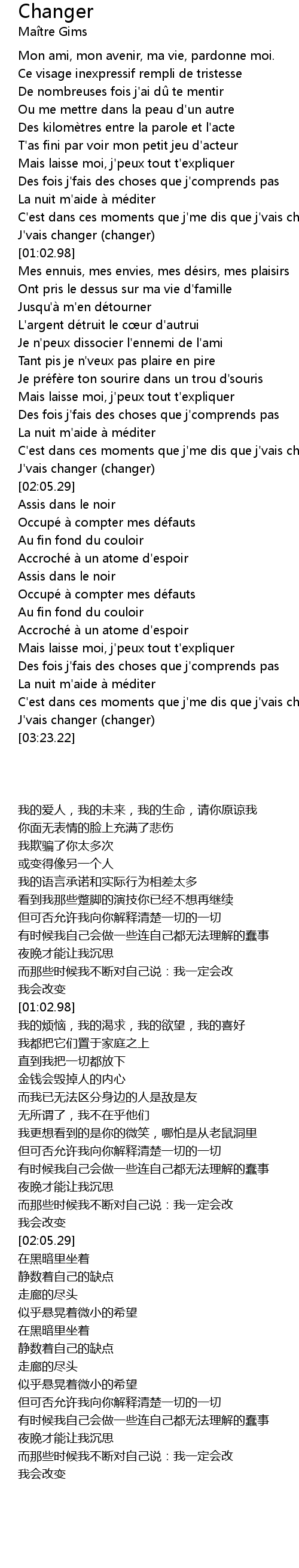 | [01:50.45] | C' est dans ces moments que j' me dis que j' vais changer changer |