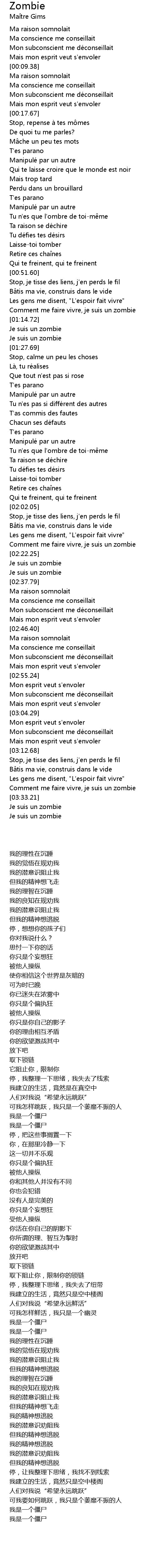 | [02:16.81] | Comment me faire vivre, je suis un zombie |
