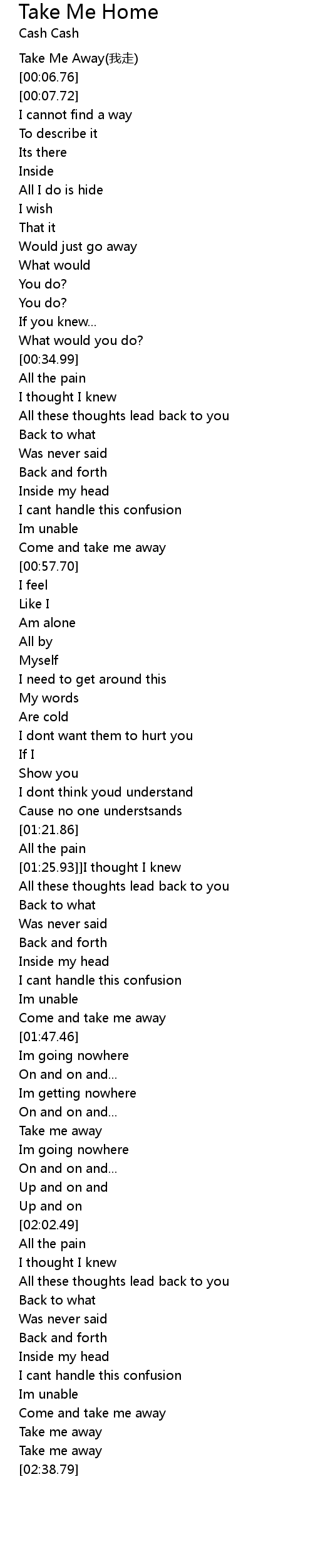 | [00:03.55] | Take Me Away wǒ zǒu |