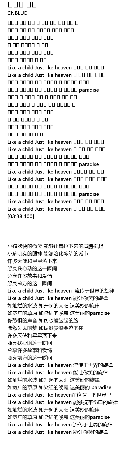 | [03:20.910] | Like a child Just like heaven 세상에 퍼질 멜로디 |