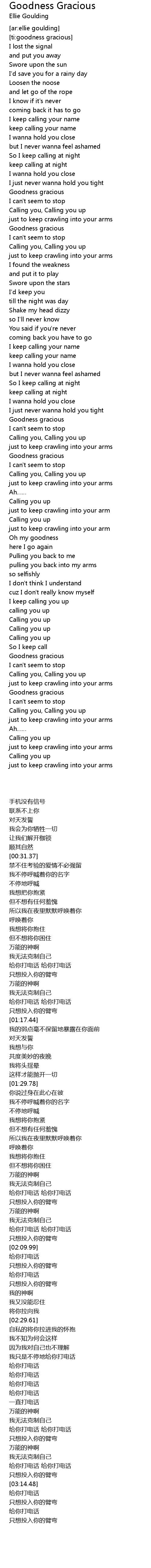 | [02:38.33] | I keep calling you up |