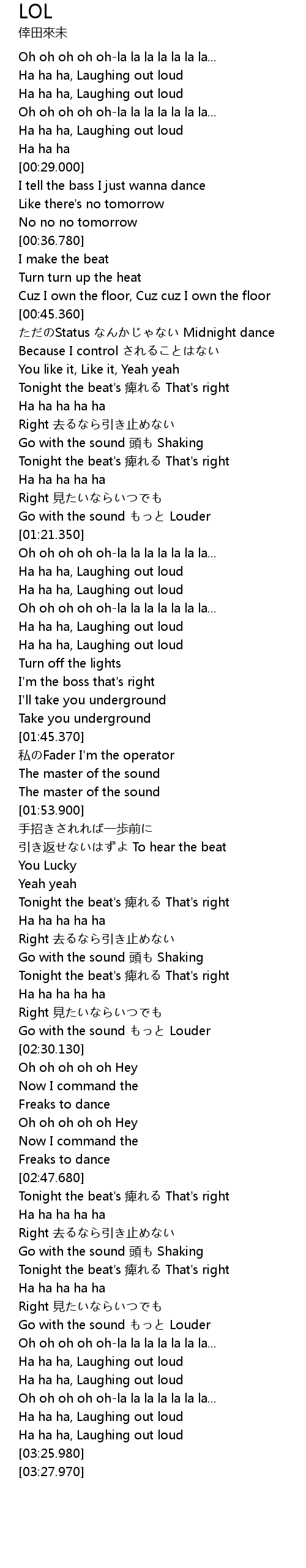 | [03:23.900] | Ha ha ha, Laughing out loud |