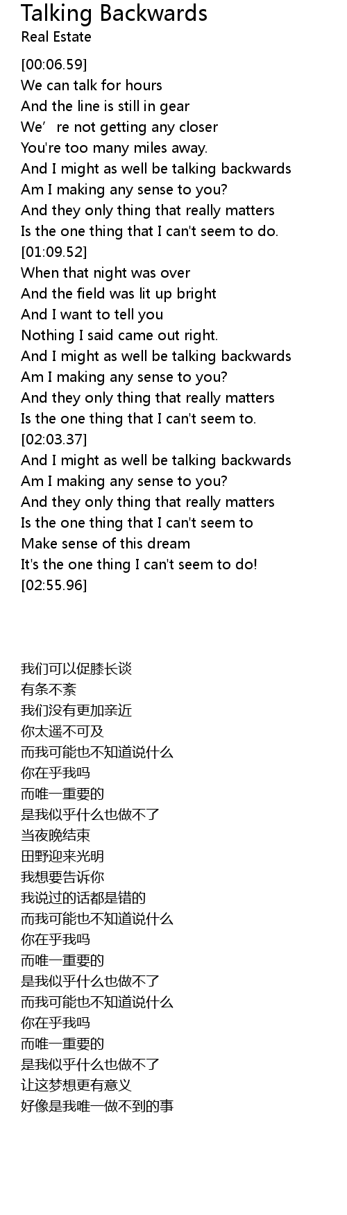 | [00:44.15] | And I might as well be talking backwards |