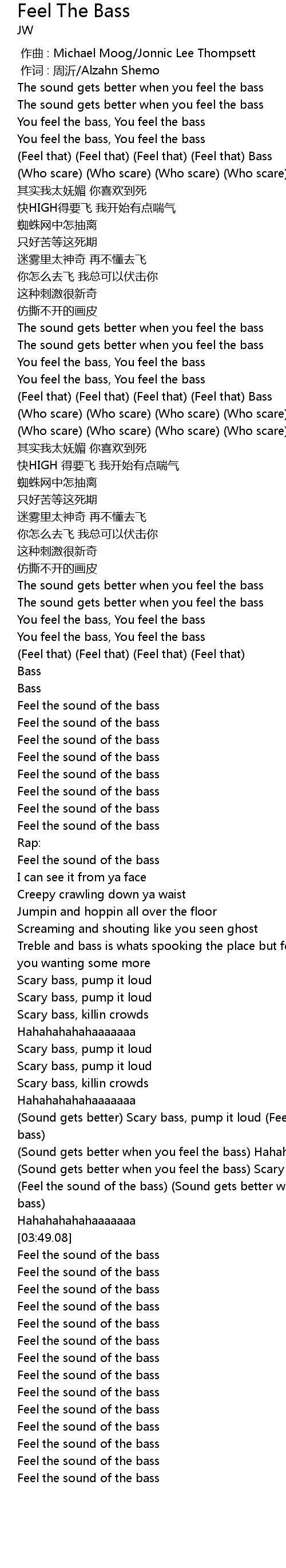 | [03:26.51] | Sound gets better Scary bass, pump it loud Feel the sound of the bass |