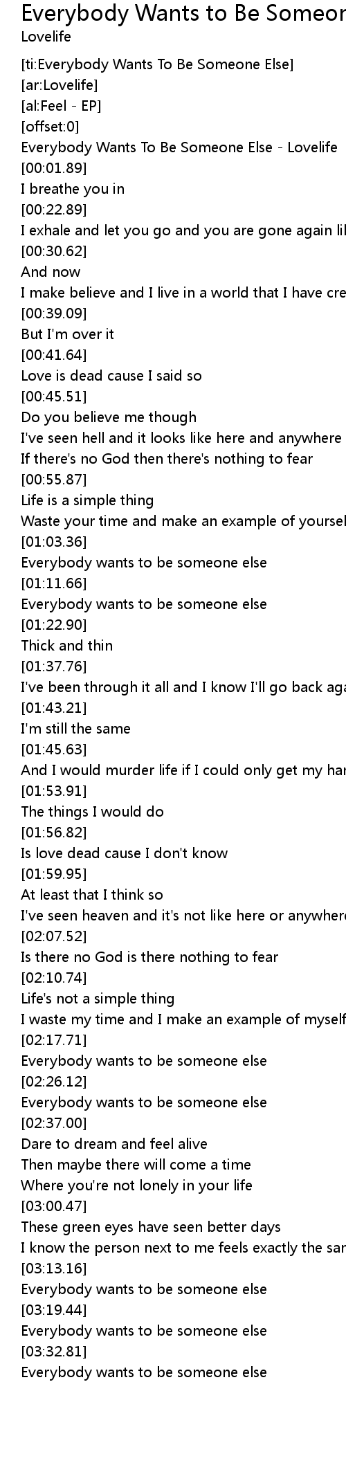 | [00:00.57] | Everybody Wants To Be Someone Else - Lovelife |
