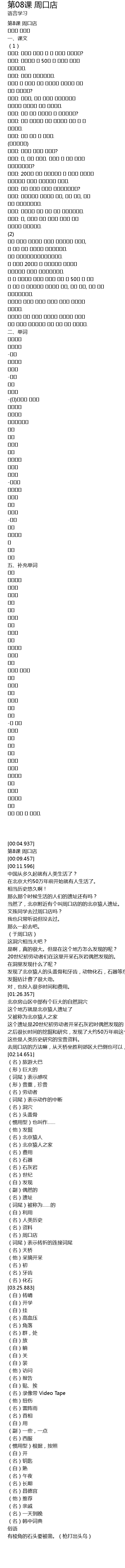 | [00:04.937] | 第8课 周口店 |