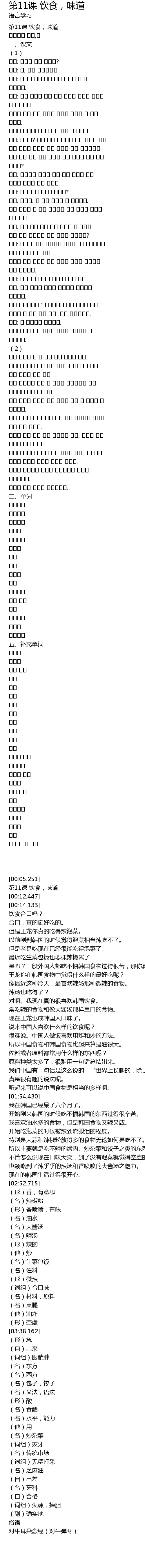 | [00:05.251] | 第11课 饮食,味道 |