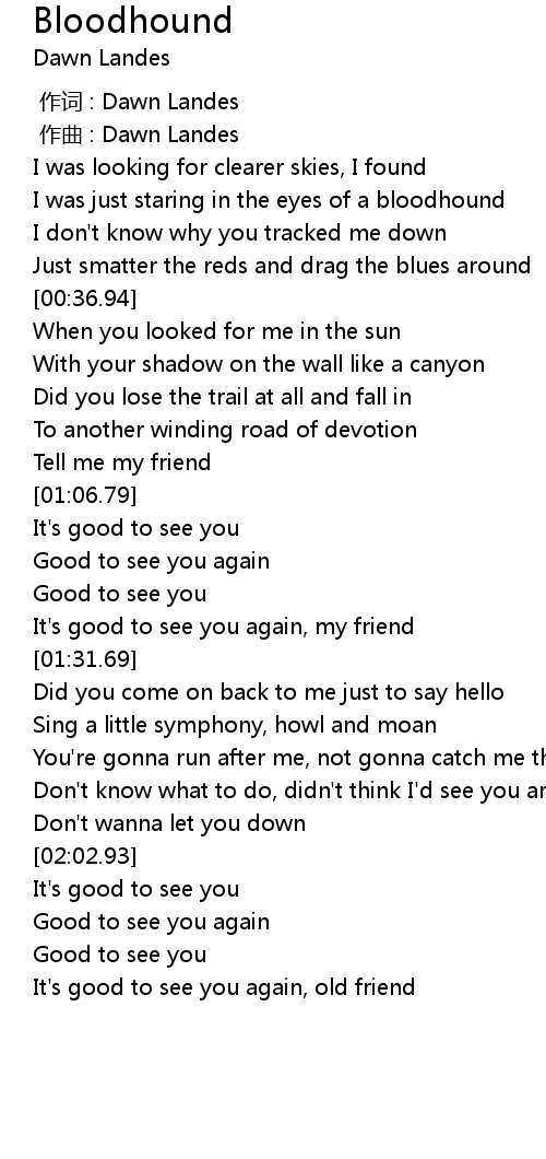 | [00:21.90] | I was just staring in the eyes of a bloodhound |