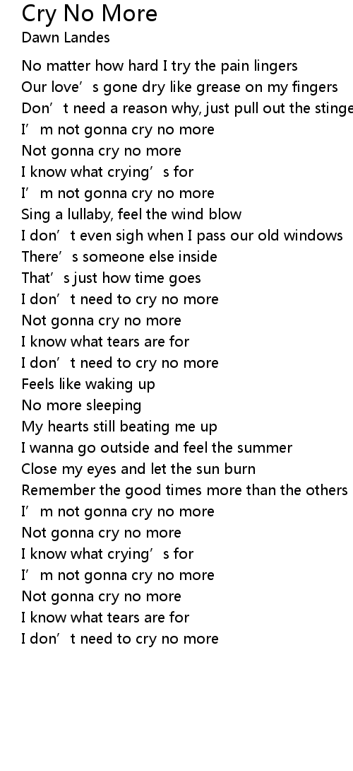 | I don' t need to cry no more |