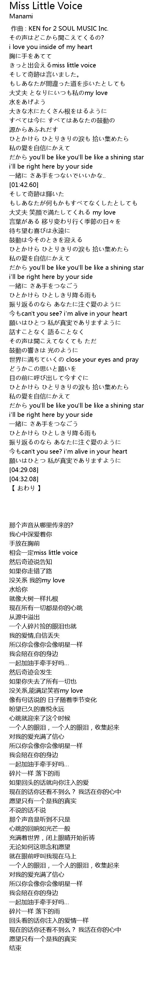 | [02:03.15] | 大丈夫 笑顔で満たしてくれる my love |