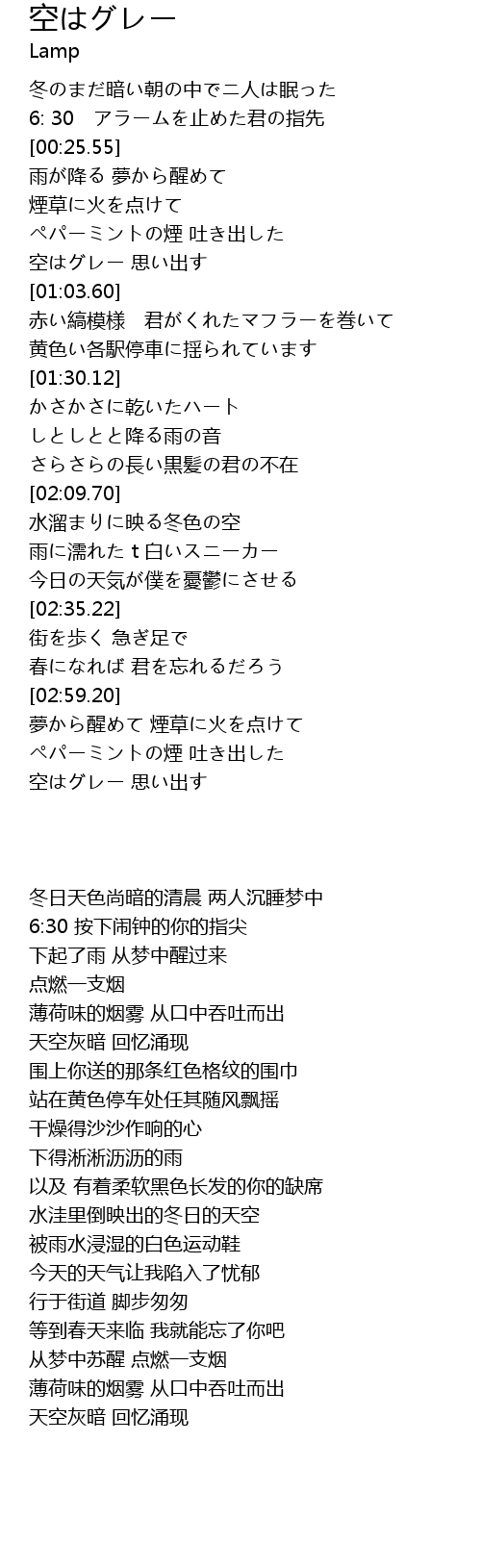 | [02:59.23] | 夢から醒めて 煙草に火を点けて |