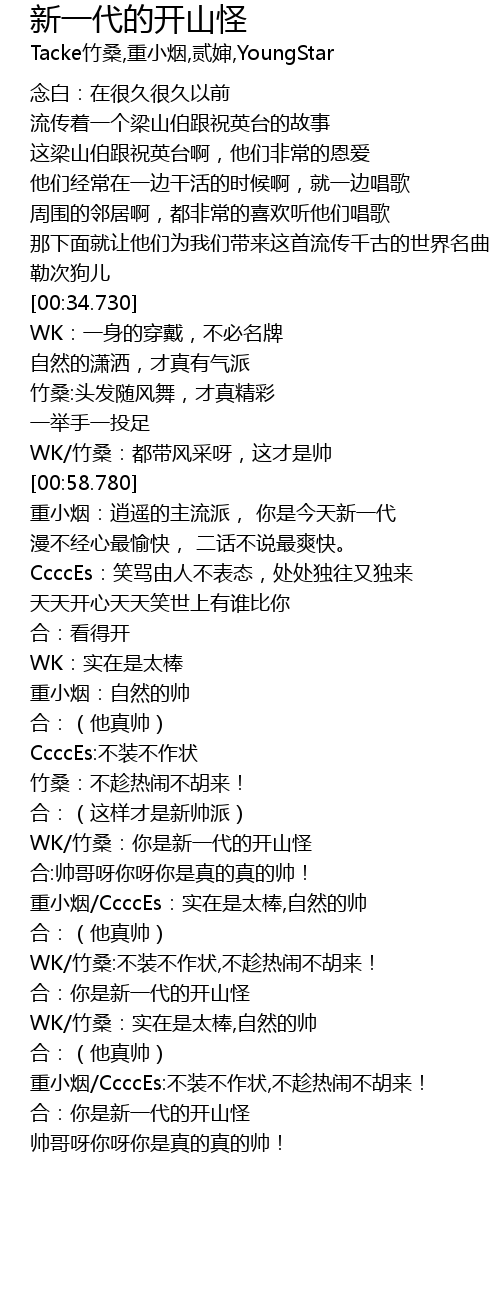 | [02:00.050] | 合:你是新一代的开山怪 |