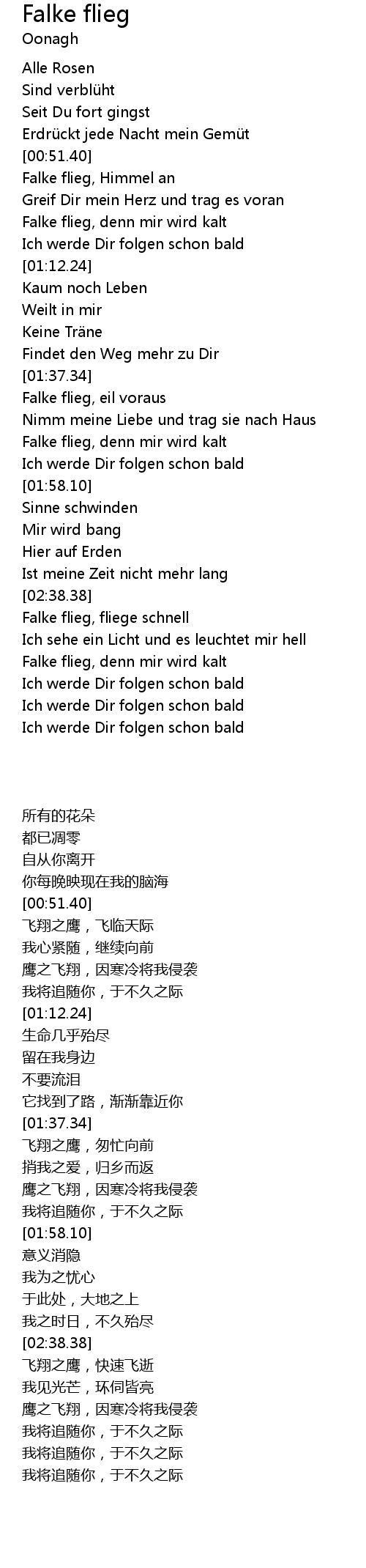 | [02:50.13] | Falke flieg, denn mir wird kalt |