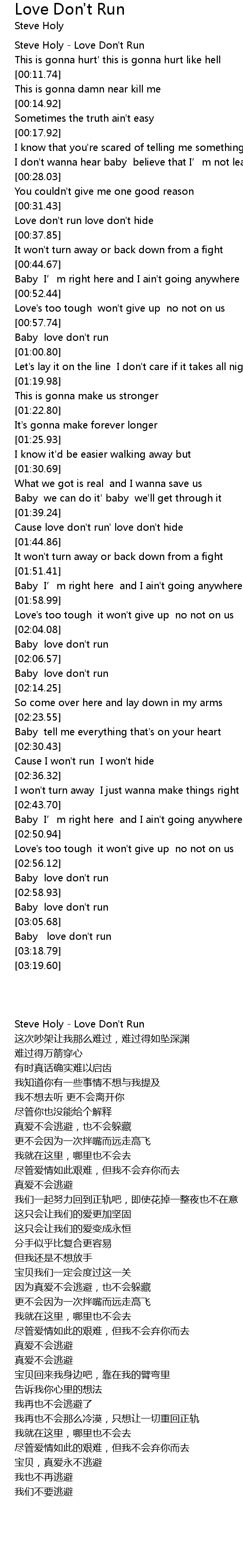 | [00:00.76] | Steve Holy Love Don' t Run |