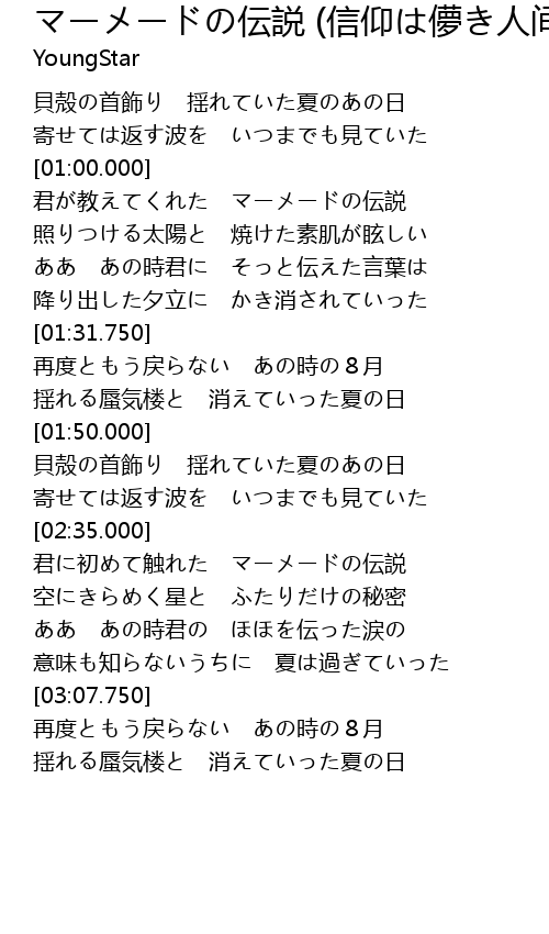 | [01:04.750] | 君が教えてくれた マーメードの伝説 |