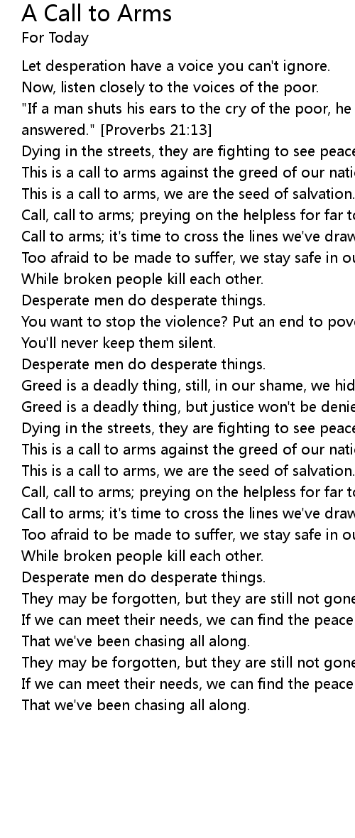 Call to arms; it's time to cross the lines we've drawn. |