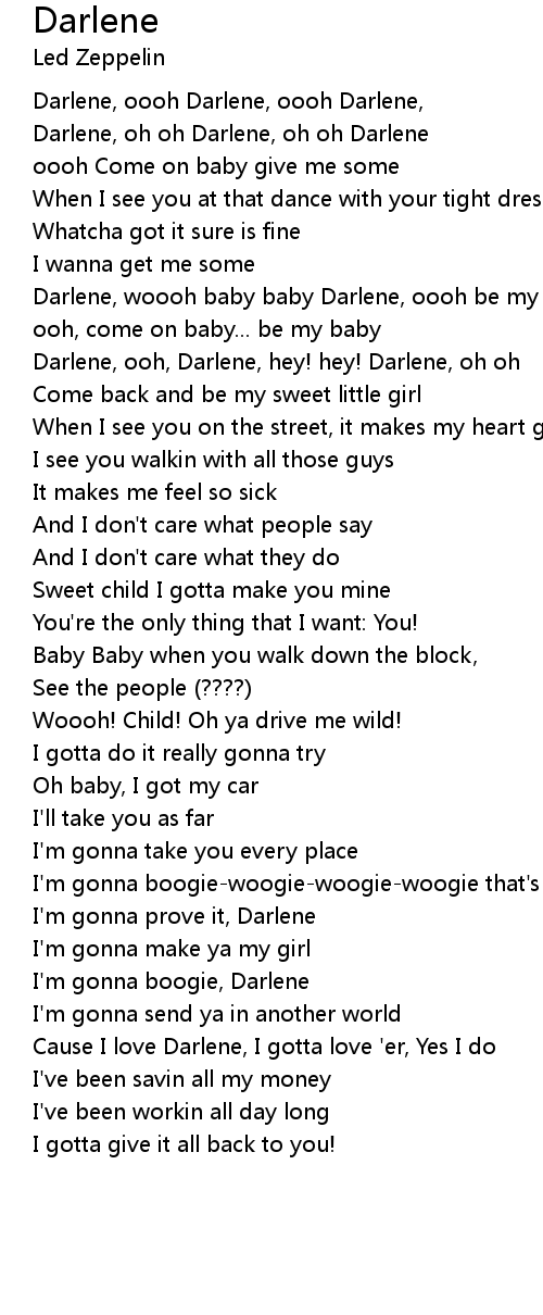 Darlene, woooh baby baby Darlene, oooh be my baby Darlene, |