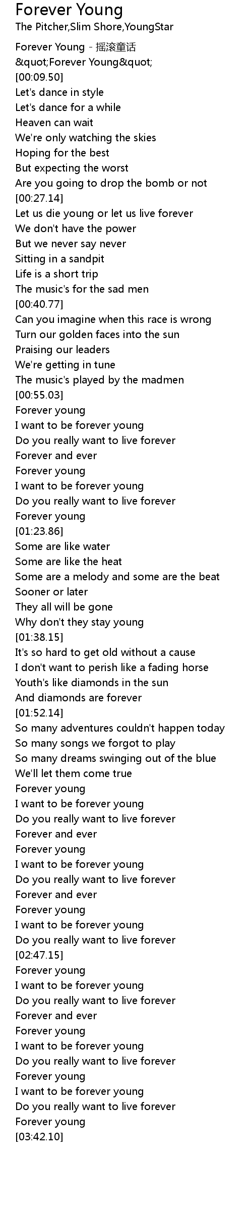 | [03:03.33] | I want to be forever young |