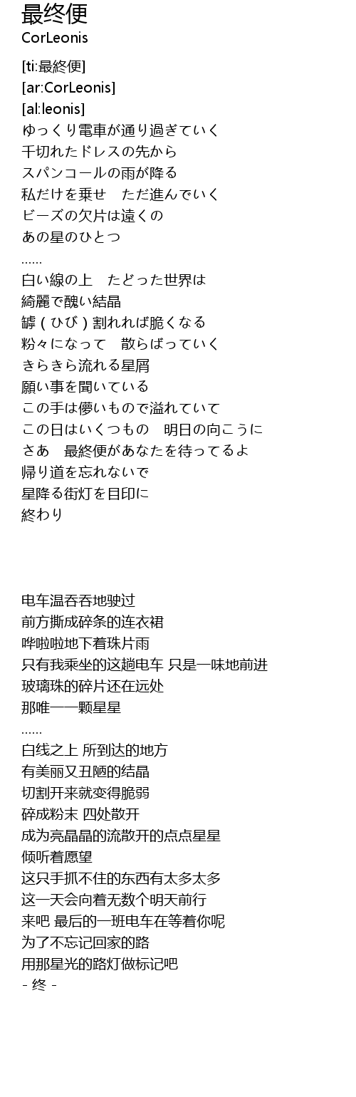| [00:02.69] | ゆっくり電車が通り過ぎていく |