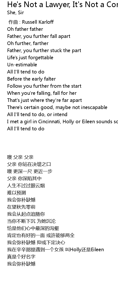 | [02:11.15] | I met a girl in Cincinnati, Holly or Eileen sounds so good |