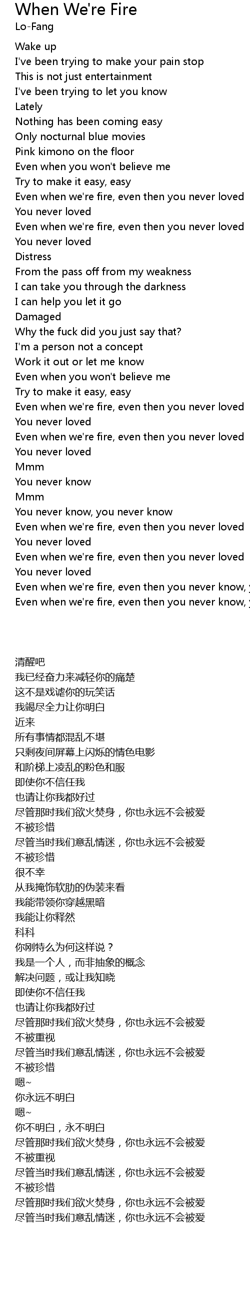 | [03:32.790] | Even when we're fire, even then you never know, you never loved |