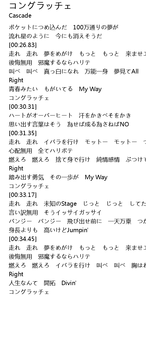 | [00:29.85] | コングラッチェ |