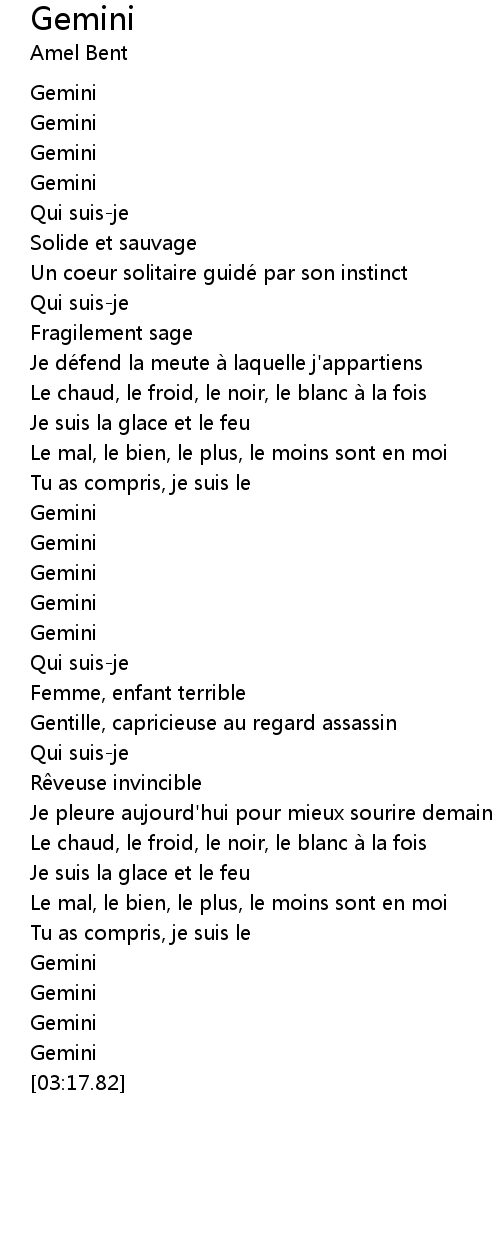 | [01:00.27] | Le chaud, le froid, le noir, le blanc a la fois |