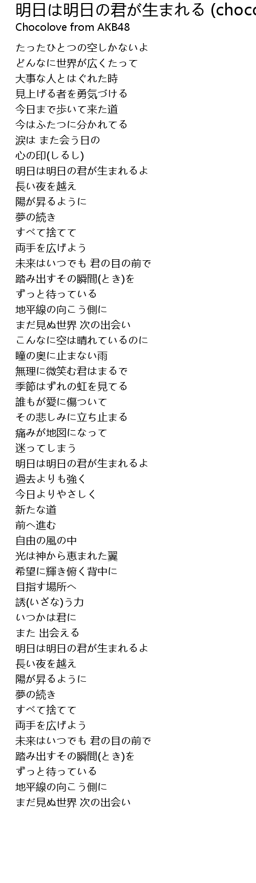 | Song | 明日は明日の君が生まれる (choco-mix) |