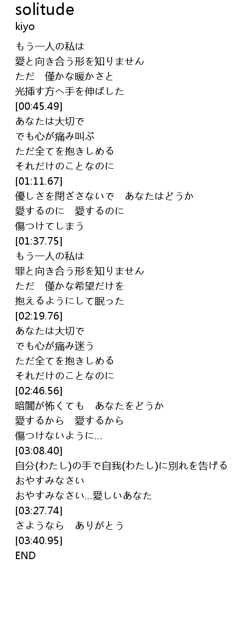 | [03:08.66] | 自分(わたし)の手で自我(わたし)に別れを告げる |