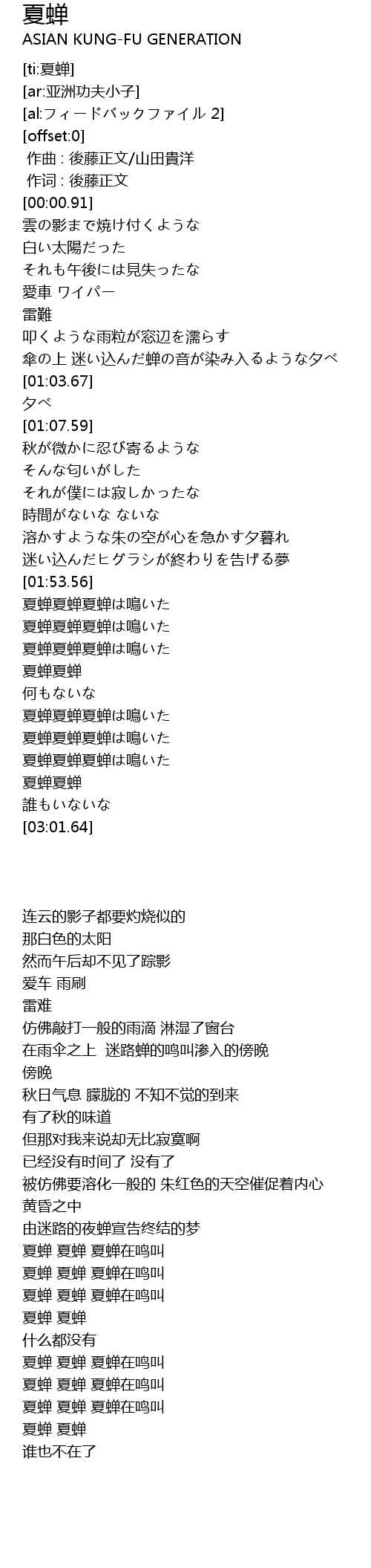 | [02:21.94] | 夏蝉夏蝉夏蝉は鳴いた |
