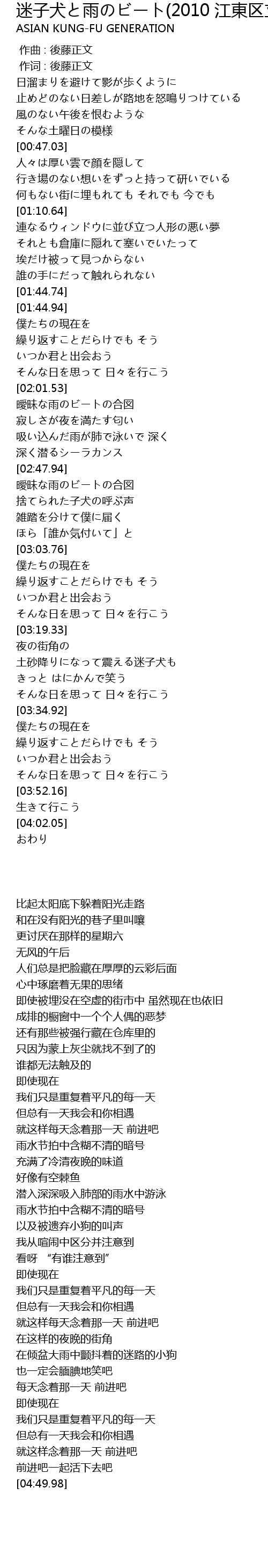| [00:01.00] | 作词 : 後藤正文 |