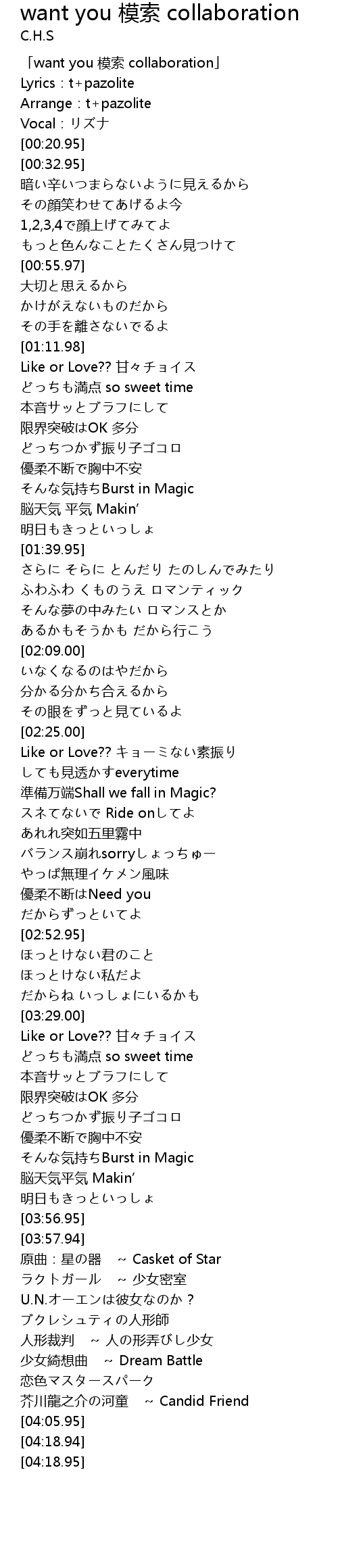 | [00:00.95] | 「want you 模索 collaboration」 |