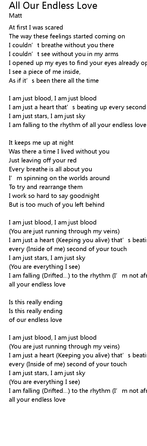 | I am falling Drifted to the rhythm I' m not afraid, just let me fall of all your endless love |