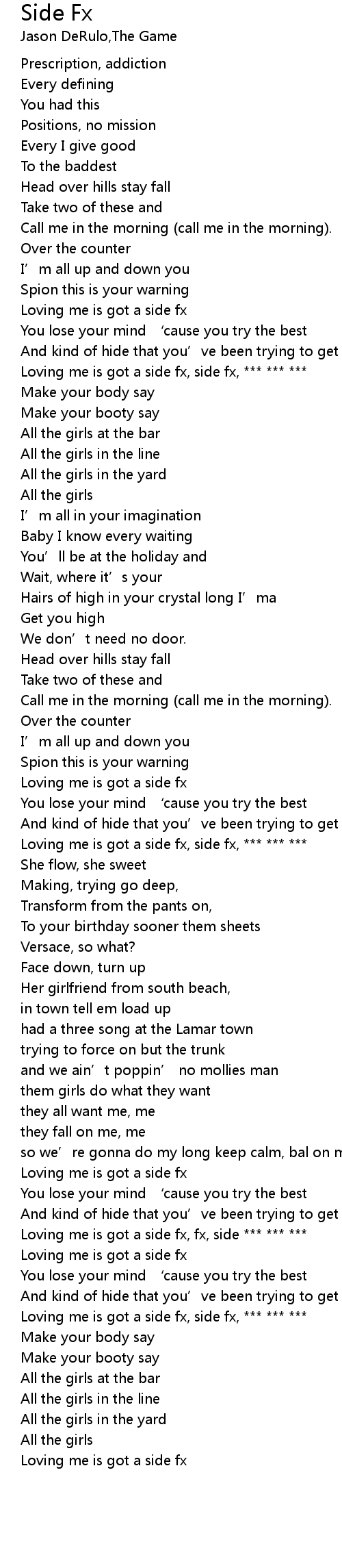 | [02:00.760] | Loving me is got a side fx, side fx, *** *** *** |