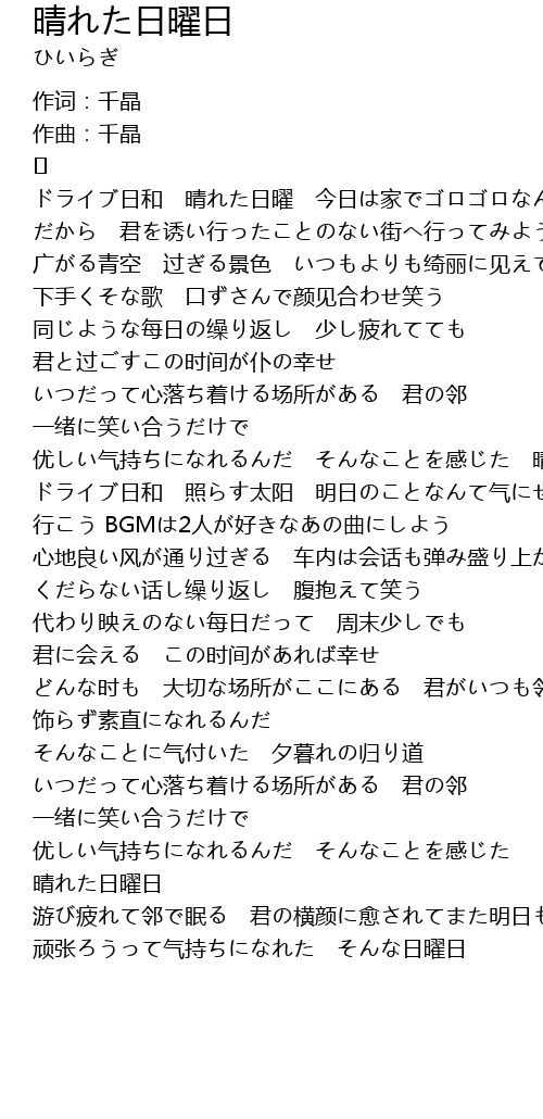 | 优しい气持ちになれるんだ そんなことを感じた 晴れた日曜日 | |