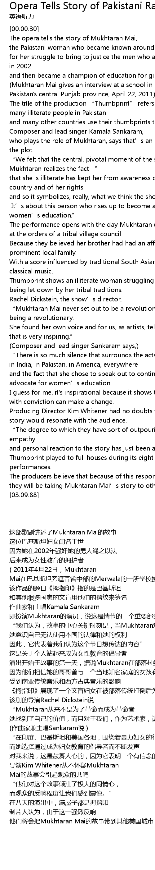 | [00:09.09] | The opera tells the story of Mukhtaran Mai, |