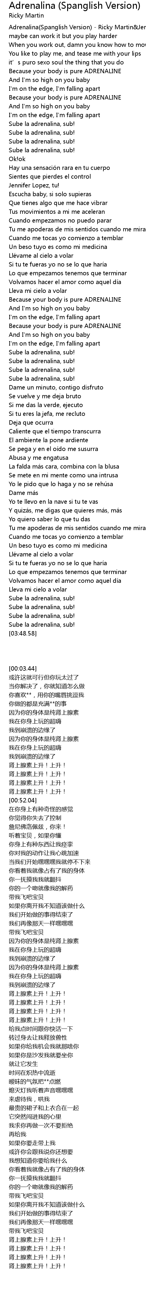 | [00:03.44] | Adrenalina Spanglish Version Ricky Martin Jennifer Lopez Wisin |