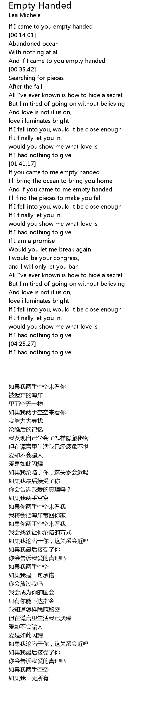 And if I came to you empty handed |