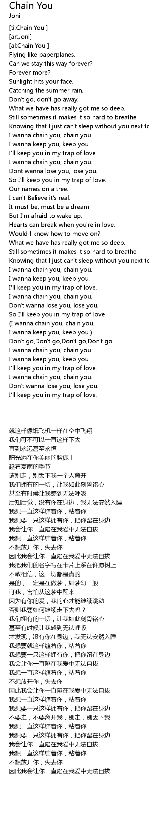 | [03:04.260] | Don't go,Don't go,Don't go,Don't go |