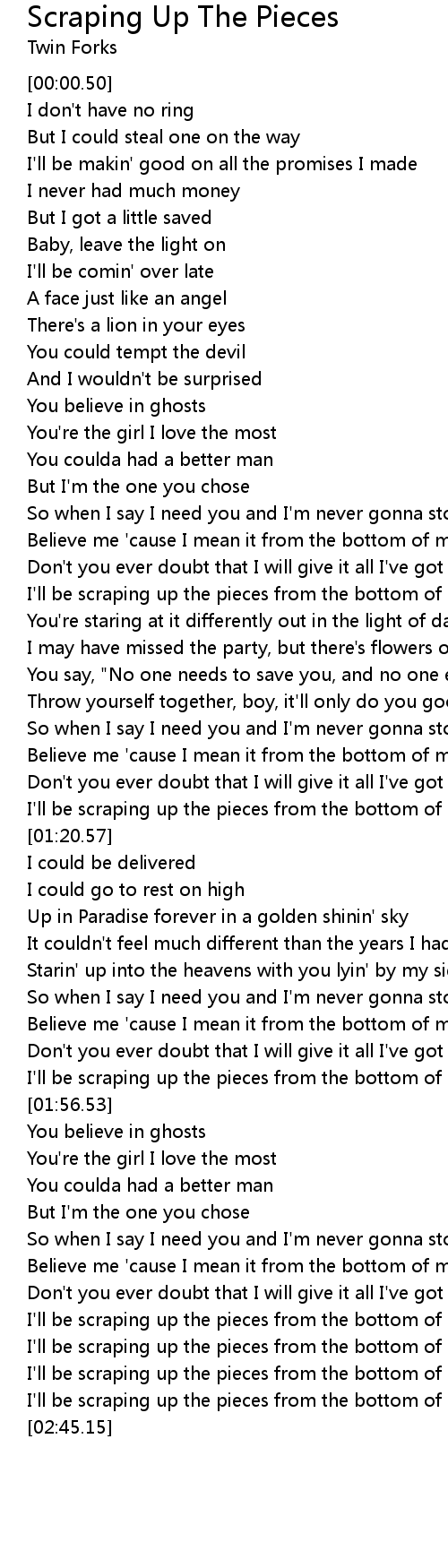 [02:41.31] I'll be scraping up the pieces from the bottom of my heart