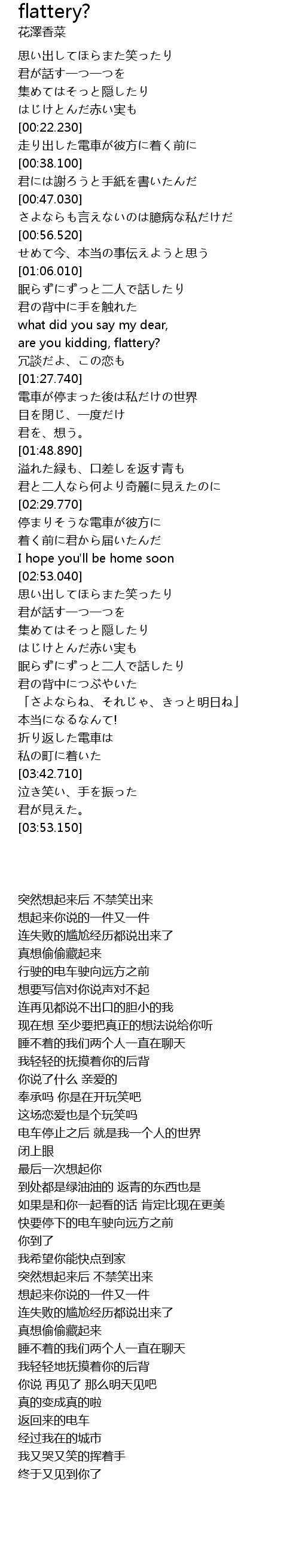 | [00:58.210] | せめて今、本当の事伝えようと思う |