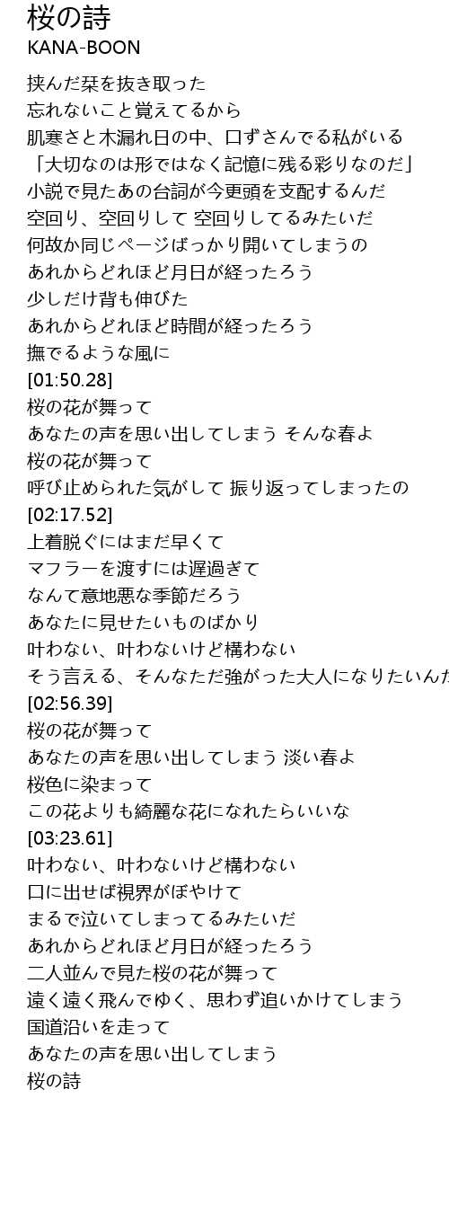| [04:08.61] | 二人並んで見た桜の花が舞って |