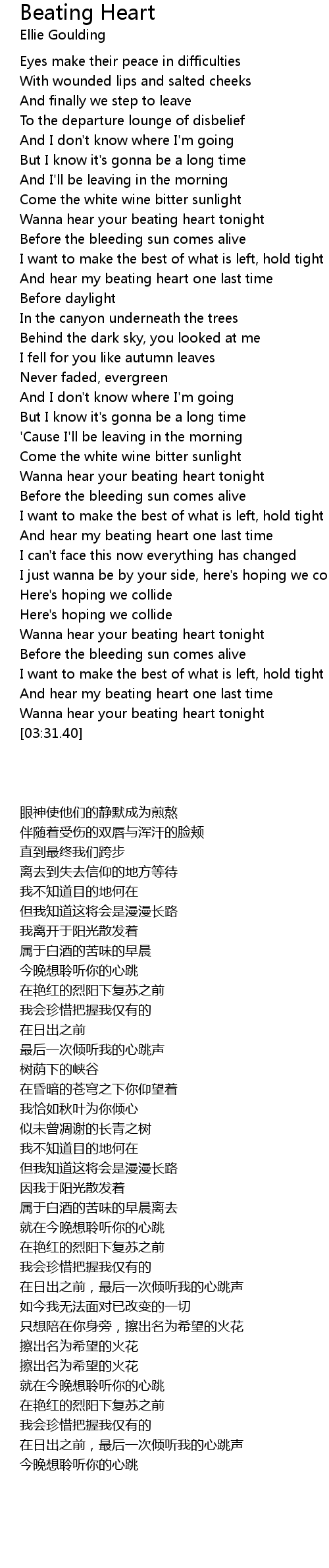 And hear my beating heart one last time |