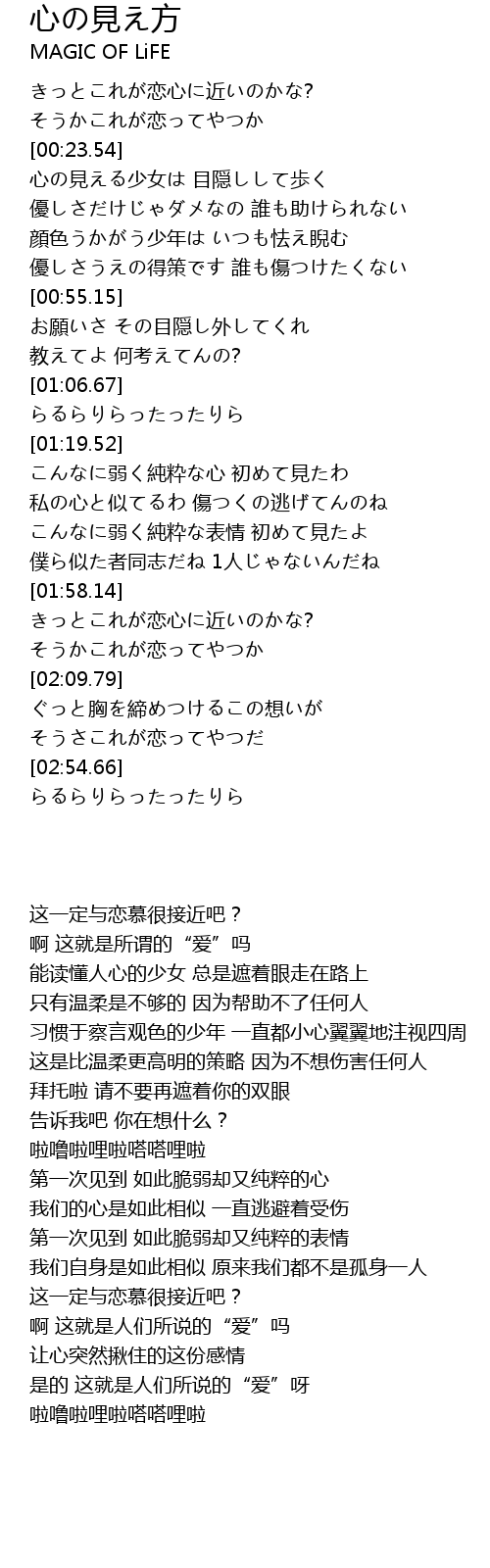 | [02:06.28] | そうかこれが恋ってやつか |