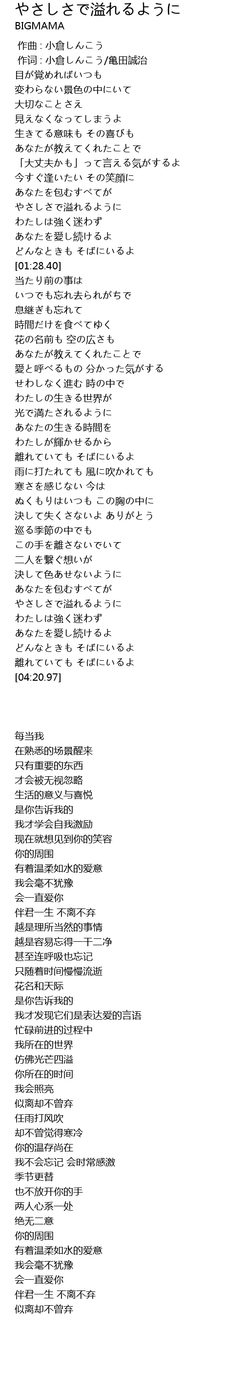 | [03:40.21] | やさしさで溢れるように |
