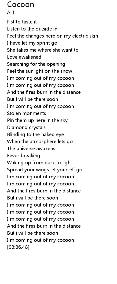 | [03:11.28] | I´m coming out of my cocoon |