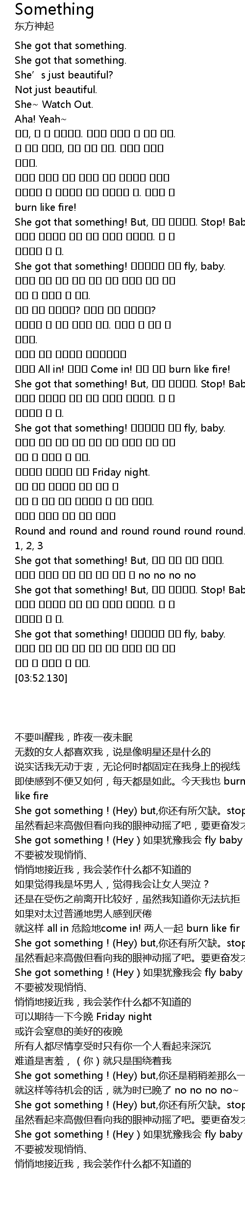 | [03:26.710] | She got that something! But, 내겐 부족해요. Stop! Baby. |