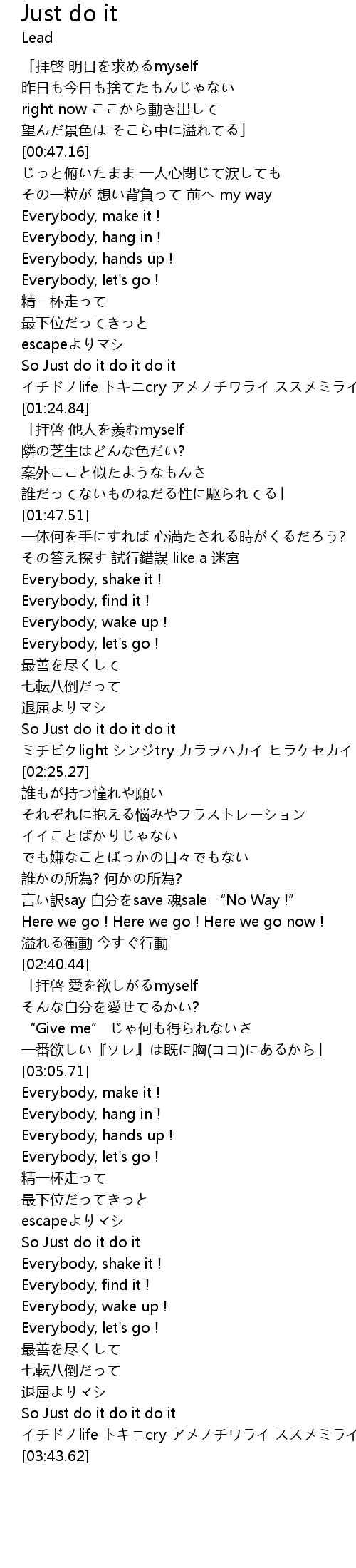 | [03:20.83] | So Just do it do it |