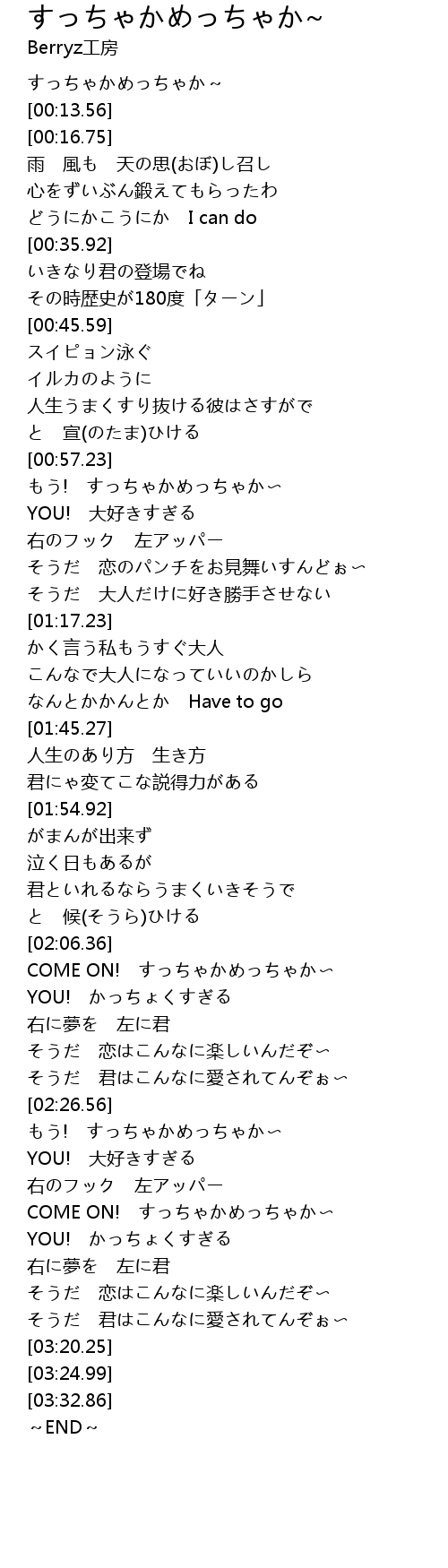 | [02:07.53] | COME ON! すっちゃかめっちゃか〜 |
