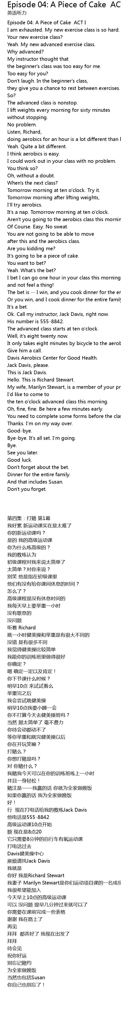 | [00:31.49] | I am exhausted. My new exercise class is so hard. |
